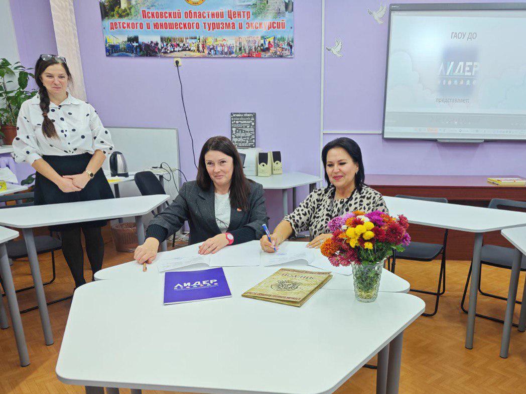 17 октября в рамках деловой встречи «Опыт и перспективы сотрудничества между учреждениями дополнительного образования города Пскова Российской Федерации и города Полоцка Республики Беларусь» Государственное автономное образовательное учреждение дополнительного образования Псковской области «Лидер» (г. Псков, Российская Федерация) в лице врио директора Сергеевой Ольги Викторовны и Государственное учреждение дополнительного образования «Полоцкий районный центр детей и молодежи» (г. Полоцк, Республика Беларусь) в лице директора Гаврильчик Ирины Эдуардовны подписали договор о сотрудничестве!